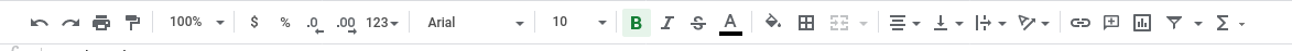 Many items in Sheets’ toolbar has many of the same items as Docs’ toolbar. After the Text color item, is where there are differences. These icons include Border settings, text alignment, and text wrapping and rotation.